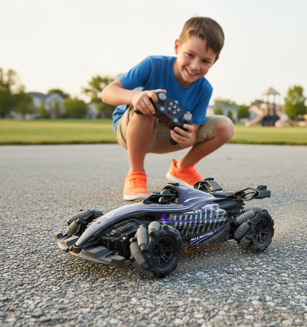 Sentí la velocidad y el poder en la palma de tu mano. Este increíble auto no es cualquier juguete: está diseñado para girar 360°, deslizarse con precisión y llenar el ambiente de emoción con su efecto de humo realista. Cada movimiento se siente como conducir un verdadero auto de carrera, con luces LED que brillan y efectos visuales que hacen que cada vuelta y cada derrape sean memorables.